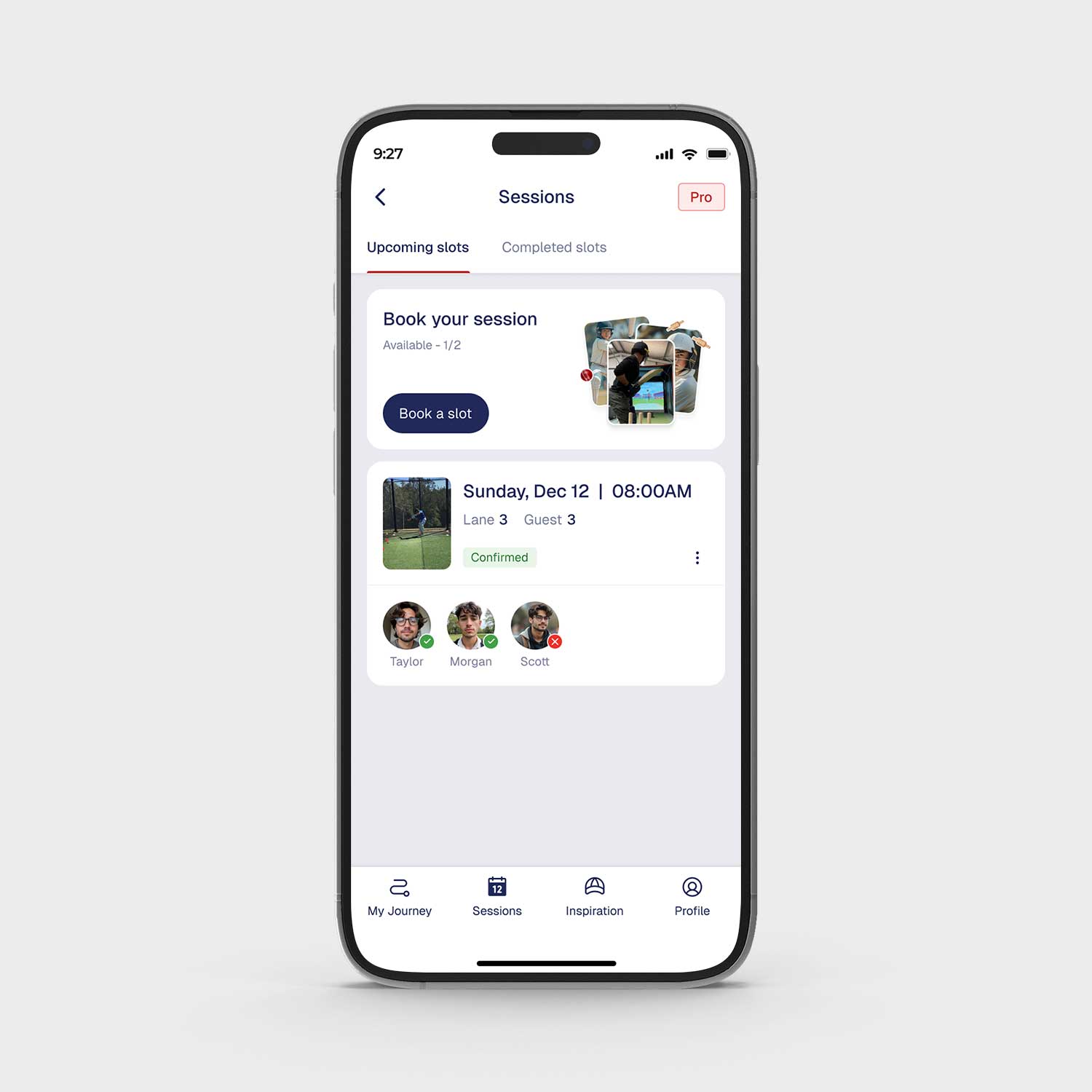 The customer app is the primary interface for players and members. It allows users to book training slots, reserve lanes, and schedule coaches with ease. Clear session visibility, confirmations, and participant management make it simple for individuals and groups to plan their training. The interface is designed for speed and clarity—so users can focus on playing, not navigating the app.