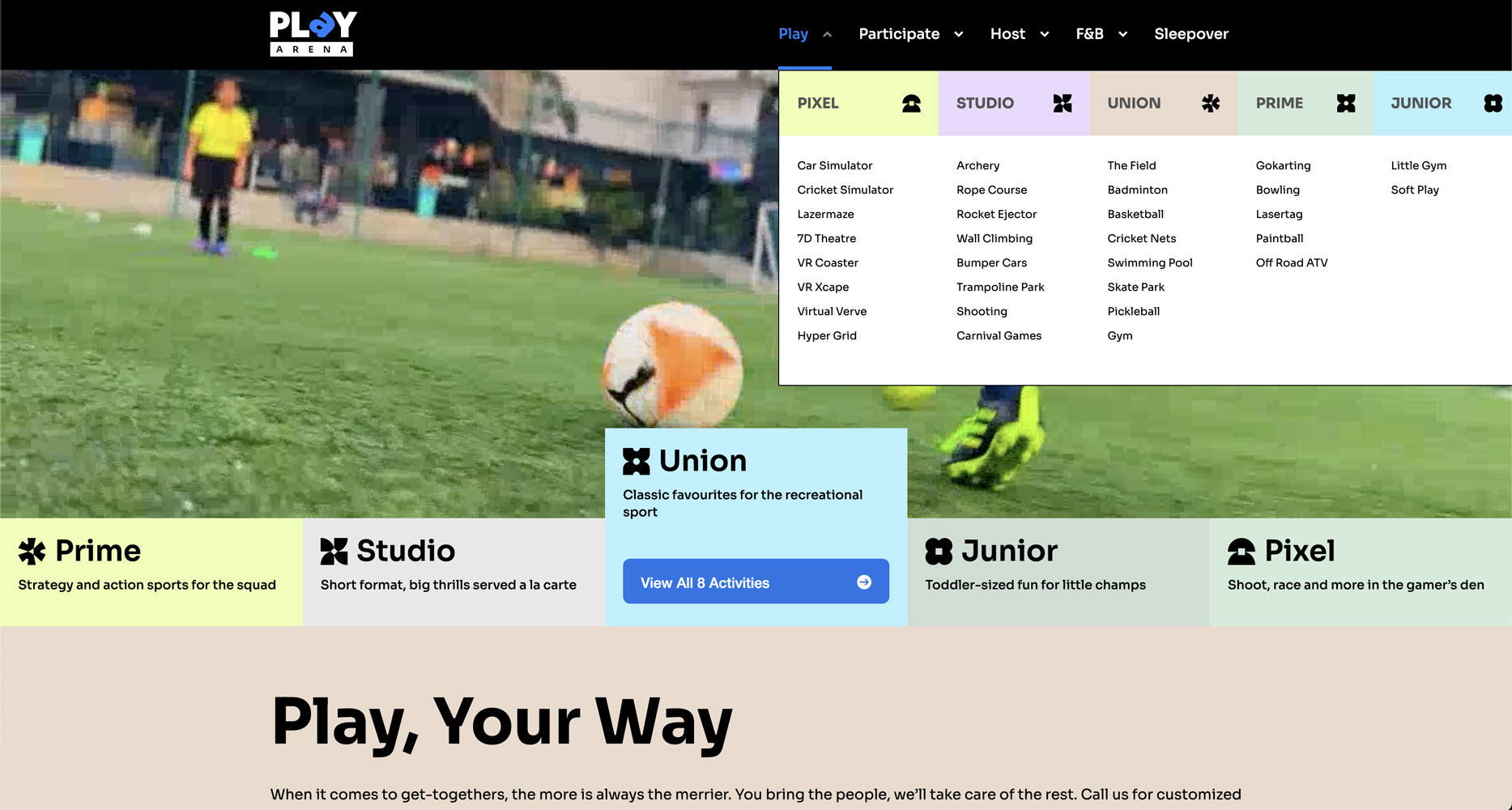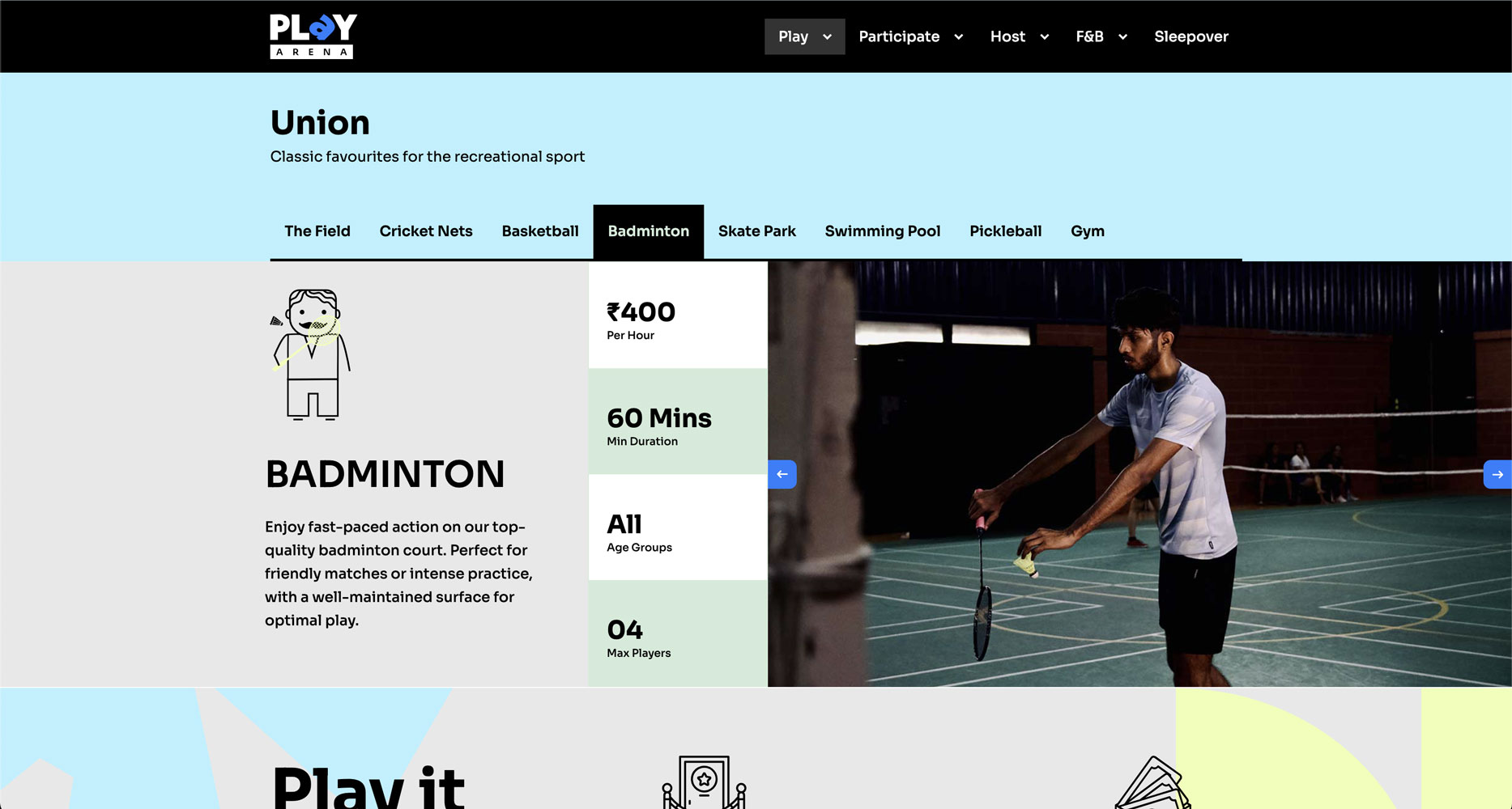 Play Arena, a leading sports and entertainment destination, rebranded in 2024 and required its digital presence to reflect the refreshed identity. The goal was to upgrade both the main website and the booking platform to match the energy and scale of the brand.